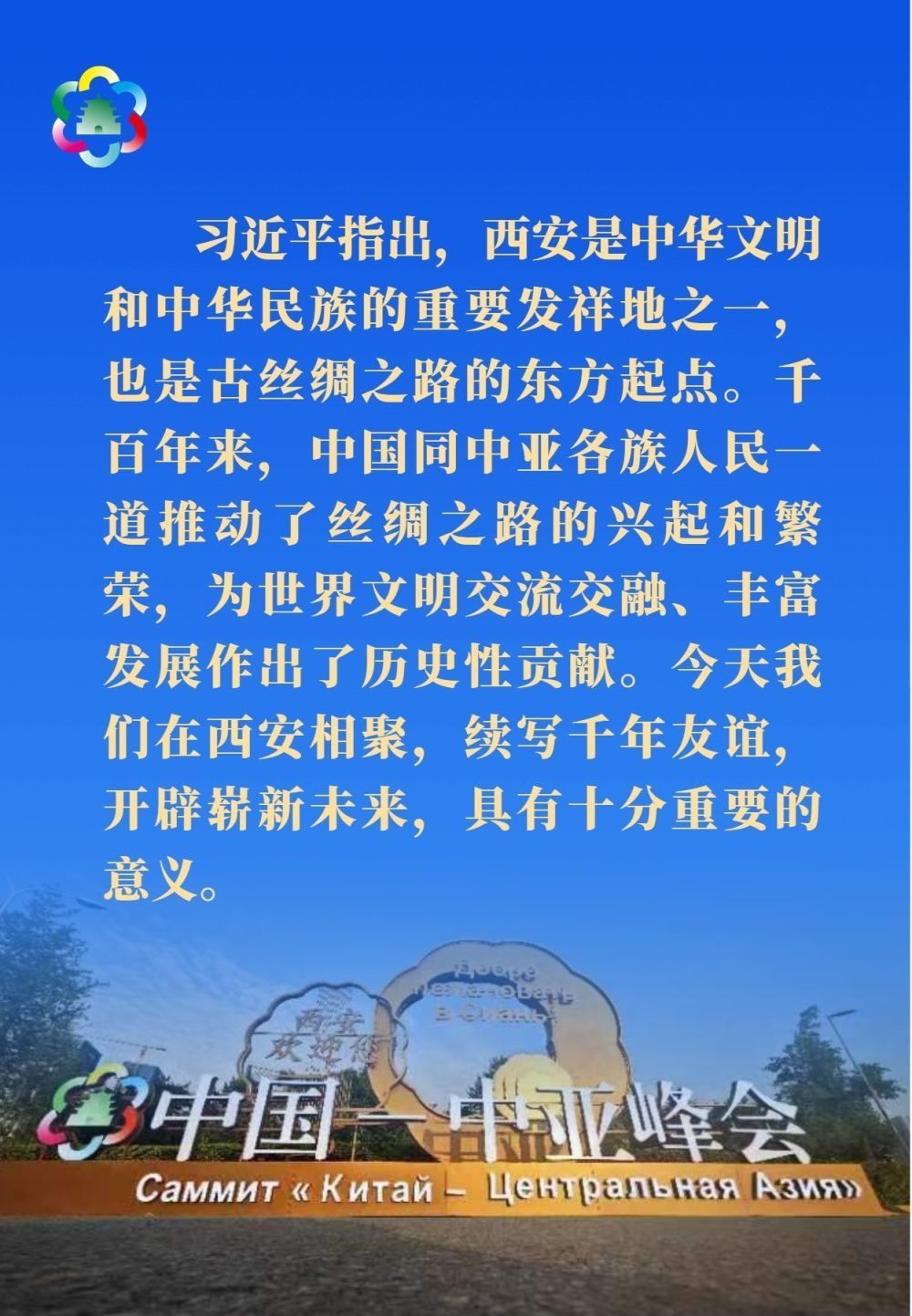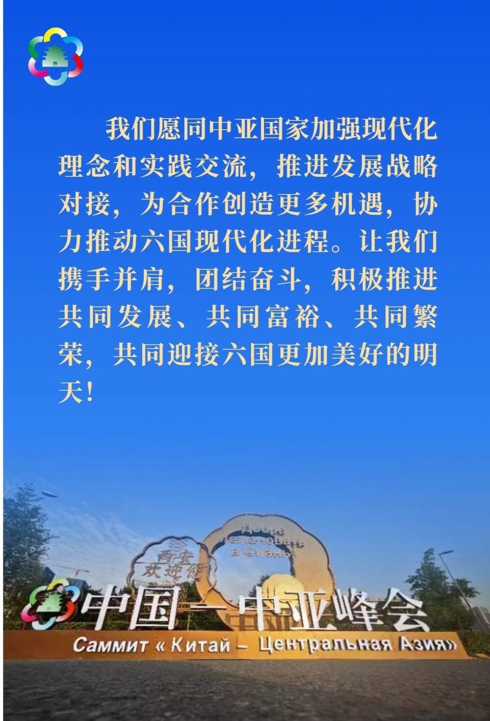 習(xí)近平發(fā)表題為《攜手建設(shè)守望相助、共同發(fā)展、普遍安全、世代友好的中國-中亞命運共同體》的主旨講話。