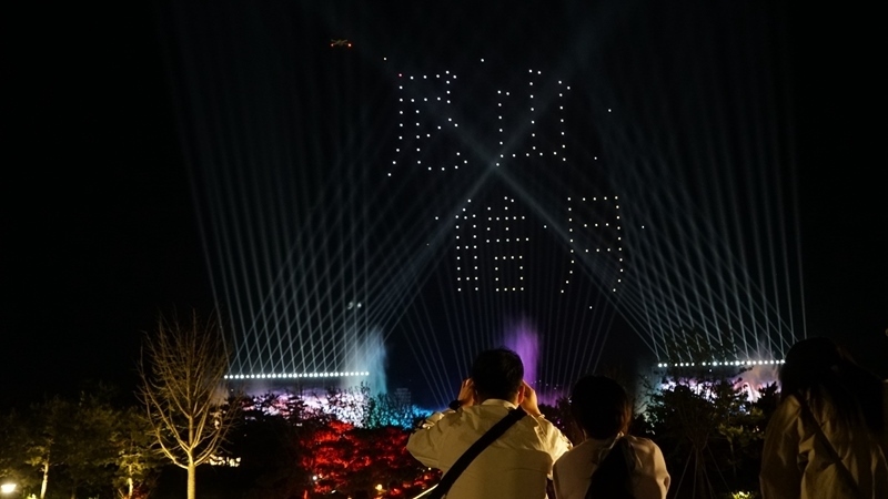山東曲阜尼山圣境夜游項目內(nèi)的無人機表演。(受訪單位供圖)