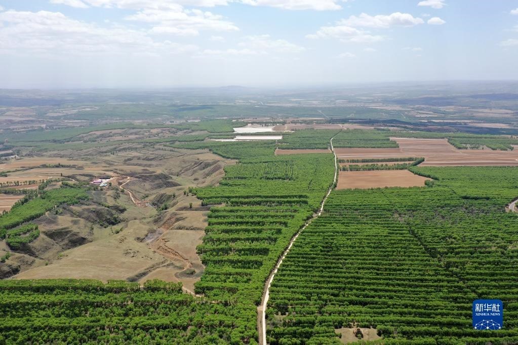 夏日時節(jié),山西省右玉縣處處綠意盎然,森林、村落、農田組成一幅美麗的生態(tài)畫卷。