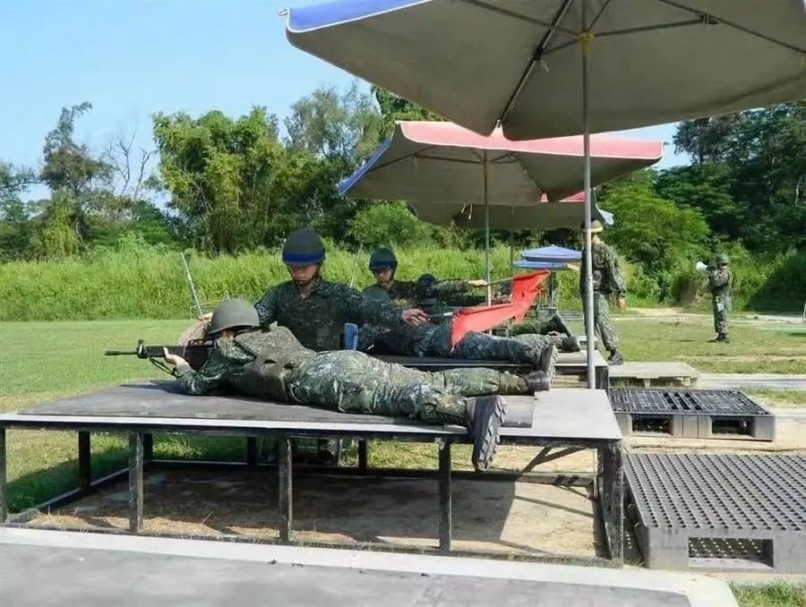 臺(tái)兵在太陽(yáng)傘下訓(xùn)練射擊被臺(tái)媒諷刺為“草莓兵”