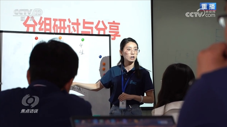 而在VR課堂,參加培訓的職教教師們通過VR眼鏡體驗太空艙的虛擬場景,這樣的體驗讓他們感知到了人工智能發(fā)展的最新方向。