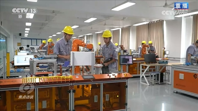 國家教育行政學院職業(yè)教育研究中心主任邢暉:“過去一說職業(yè)教育都是手工的、簡單的技能操作,但是現(xiàn)在不行了,現(xiàn)在很多的工廠都是數(shù)字化的,還有大的物聯(lián)網(wǎng)、互聯(lián)網(wǎng),因此對于技術(shù)技能人才無論是知識還是技能都是一系列挑戰(zhàn)。因此職業(yè)教育在專業(yè)設(shè)置、課程配置、教學方法上也都需要不斷升級?!?/p>
