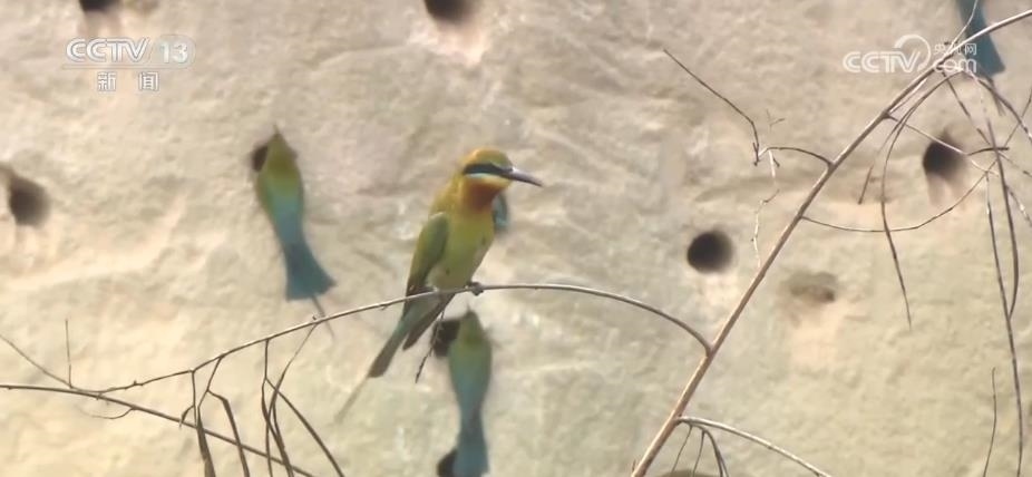 眼前,這些看上去很像是泥巴墻的建筑,其實(shí)是人工建造的候鳥巢穴。根據(jù)栗喉蜂虎的生活習(xí)慣,保護(hù)區(qū)工作人員專門在它們回來(lái)之前就對(duì)懸壁進(jìn)行修整,讓這些美麗的小鳥更方便安家。