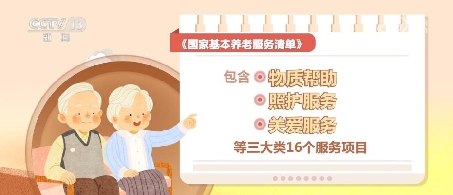 《國家基本養(yǎng)老服務(wù)清單》的內(nèi)容,包含物質(zhì)幫助、照護服務(wù)、關(guān)愛服務(wù)等三大類16個服務(wù)項目。