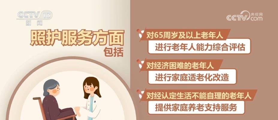 照護服務(wù)方面包括:對65周歲及以上老年人進(jìn)行老年人能力綜合評估;對經(jīng)濟困難的老年人進(jìn)行家庭適老化改造;對經(jīng)認(rèn)定生活不能自理的老年人提供家庭養(yǎng)老支持服務(wù);對特困老年人進(jìn)行集中供養(yǎng)或者分散供養(yǎng);對國家和社會作出特殊貢獻(xiàn)的老年人提供集中供養(yǎng)服務(wù);計劃生育特殊家庭老年人優(yōu)先享受機構(gòu)養(yǎng)老。
