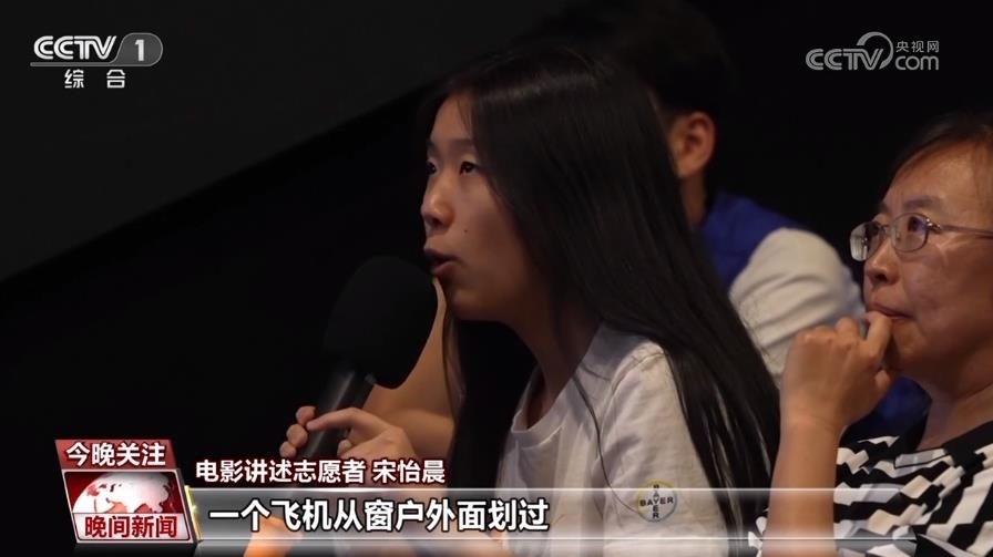 電影講述志愿者 宋怡晨:講述者就是一個(gè)旁白的工作,在臺(tái)詞的空隙、轉(zhuǎn)場(chǎng)的空隙把所有那些在電影院里只能通過眼睛看得到的信息,以聲音的形式來展現(xiàn)給盲人觀眾。你說一個(gè)杯子,誰都知道杯子長(zhǎng)什么樣,但你說一個(gè)太空的儀器,沒有人知道它長(zhǎng)什么樣子,他描繪不出來那個(gè)畫面,所以這個(gè)信息在他們這是斷層的。