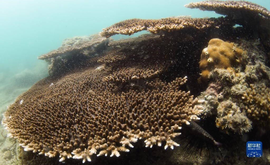 這是在蜈支洲島海域海洋牧場(chǎng)拍攝的珊瑚和魚(yú)群(2021年5月21日攝)。