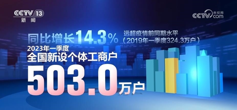 央視網(wǎng)消息:市場監(jiān)管總局5月22日發(fā)布最新數(shù)據(jù)顯示,2023年一季度,全國新設(shè)個體工商戶503.0萬戶,同比增長14.3%,遠(yuǎn)超疫情前同期水平。