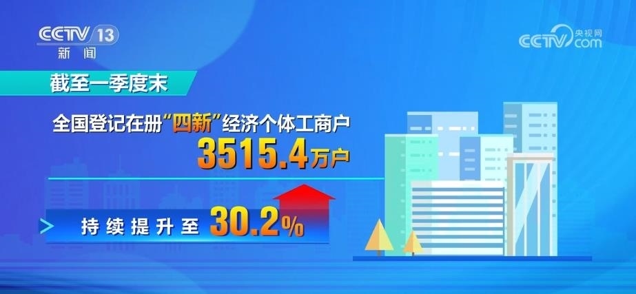 近年來,隨著新技術(shù)、新產(chǎn)業(yè)、新業(yè)態(tài)、新模式的蓬勃發(fā)展,網(wǎng)絡(luò)直播、微商電商等“新個體經(jīng)濟(jì)”不斷涌現(xiàn),為我國經(jīng)濟(jì)轉(zhuǎn)型升級注入了新的活力。截至一季度末,全國登記在冊“四新”經(jīng)濟(jì)個體工商戶3515.4萬戶,總量占比由2019年的24.9%持續(xù)提升至30.2%。