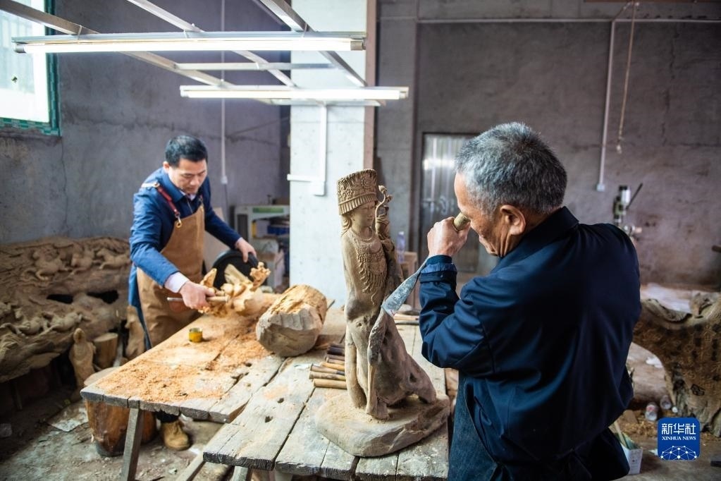 洞口木雕已被正式列入湖南省省級非物質(zhì)文化遺產(chǎn)名錄,木雕產(chǎn)品遠銷70多個國家和地區(qū)。新華社記者 陳思汗 攝