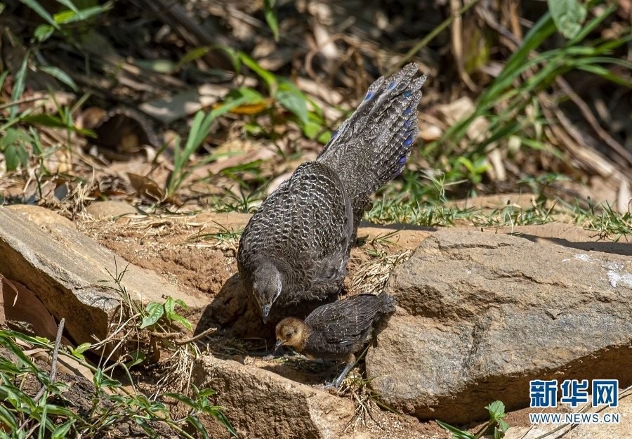 灰孔雀雉(5月1日攝)。新華網(wǎng)發(fā)(郭康 攝)