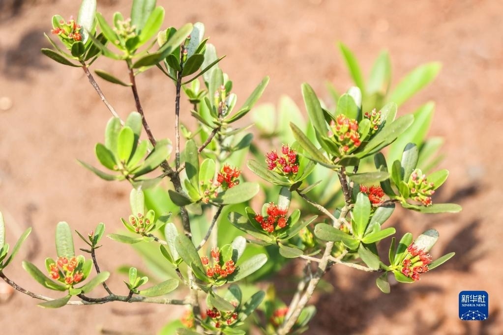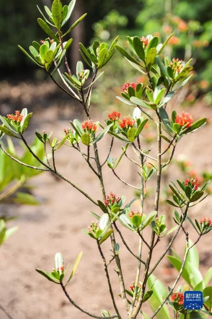 近日,在海南東寨港國家級自然保護(hù)區(qū)里的瀕危紅樹植物紅欖李迎來花期。據(jù)悉,紅欖李是珍稀瀕危紅樹植物、國家一級保護(hù)植物,被譽(yù)為紅樹林中的“大熊貓”。國內(nèi)一度僅存14株。2014年,海南東寨港國家級自然保護(hù)區(qū)管理局成功培育出紅欖李幼苗,并建立紅欖李野外種植基地。如今這里已有超過20畝、約2300株的紅欖李。