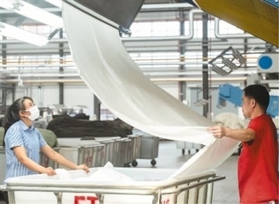近日,在廣西梧州岑溪市大業(yè)鎮(zhèn)的西部(岑溪)創(chuàng)業(yè)園泰森新紡織產(chǎn)業(yè)集聚區(qū)某車間,染整智能生產(chǎn)線開足馬力高效作業(yè),工人們?cè)趰徫簧厦β?,呈現(xiàn)出一片熱火朝天的生產(chǎn)景象。岑溪泰森項(xiàng)目以數(shù)字化轉(zhuǎn)型為主要發(fā)展方向,打造數(shù)字化轉(zhuǎn)型“5G+智慧工廠”行業(yè)新標(biāo)桿。 何華文攝(人民視覺)