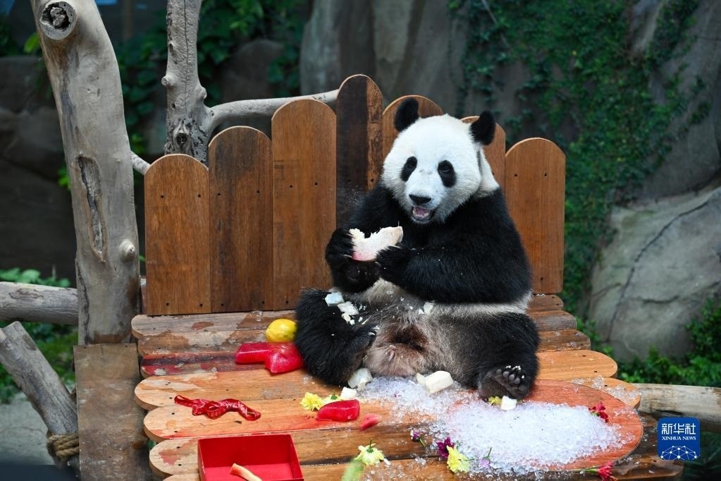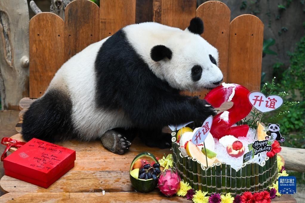 當(dāng)日,大熊貓寶寶“升誼”迎來(lái)兩歲生日,動(dòng)物園為它準(zhǔn)備了特別的生日大餐,眾多民眾前往動(dòng)物園為它慶生。“升誼”是中國(guó)旅馬大熊貓“興興”和“靚靚”生下的第三只寶寶,出生于2021年5月31日中馬建交47周年紀(jì)念日當(dāng)天。新華社記者 朱煒 攝