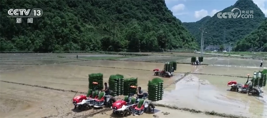 我們再到貴州省黔南州長順縣付家院村去看看。稻田里,多臺插秧機在農機手的操作下,將一株株秧苗從苗盤整齊地栽種入田。今年,長順縣計劃種植水稻12萬畝,目前超過6成的水田完成了插秧,預計6月中旬能全部結束。