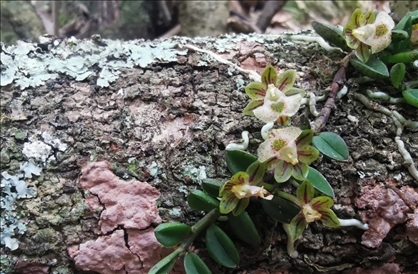 蘭科新物種——臥龍無柱蘭,于2021年11月發(fā)表于國際植物學(xué)期刊《北歐植物學(xué)》,是程躍紅和林紅強等人在轄區(qū)巡護監(jiān)測過程中發(fā)現(xiàn)的,以模式產(chǎn)地“臥龍”命名。該蘭科植物生長在海拔2700米左右的陡峭崖壁上,植株高約19-22厘米,花期7-8月,莖為呈紫紅色,開白色小花,中心為綠色,目前僅在大熊貓國家公園臥龍片區(qū)發(fā)現(xiàn)1個居群,約70株成熟個體,參照IUCN(世界自然保護聯(lián)盟)的標(biāo)準(zhǔn),臥龍無柱蘭被認定為“極度瀕?!钡燃壍闹参铩?/p>