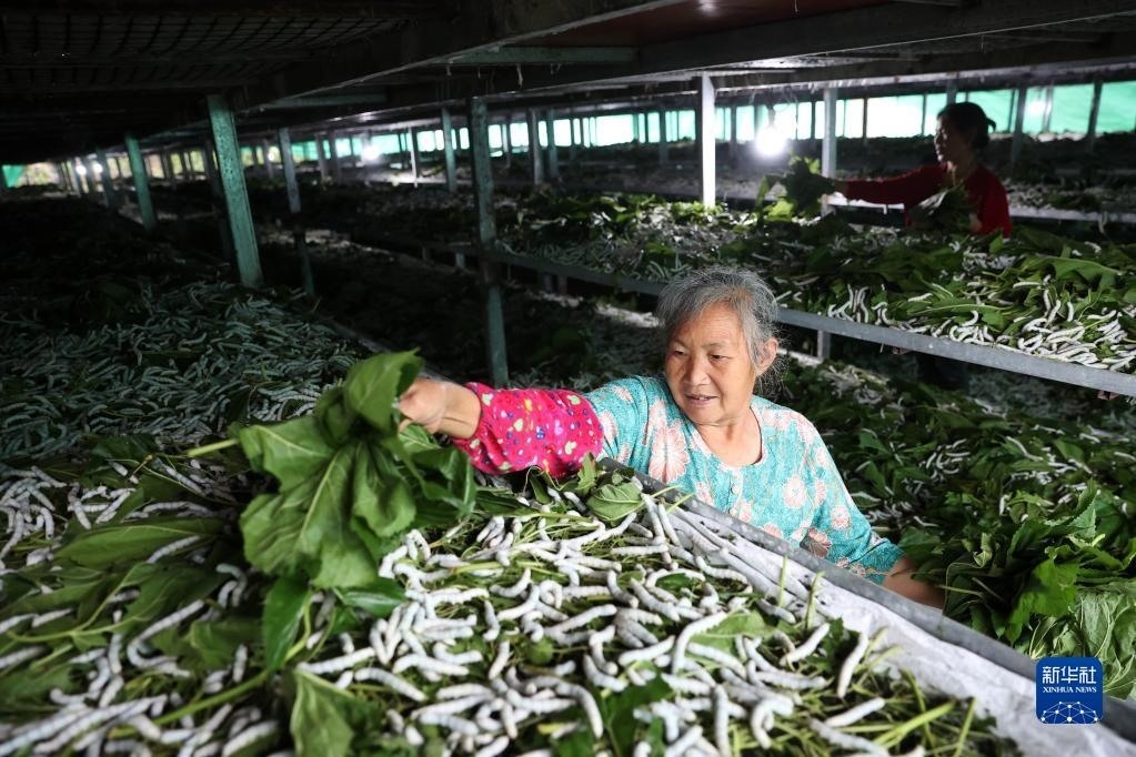 重慶市黔江區(qū)將石漠化治理與蠶桑產(chǎn)業(yè)發(fā)展相結(jié)合,在石漠化地里栽植桑樹養(yǎng)蠶,蠶繭加工成絲織品銷往多個國家和地區(qū),增加了當?shù)剞r(nóng)民收入,同時也改善了當?shù)氐纳鷳B(tài)環(huán)境,減少了水土流失。新華社發(fā)(楊敏 攝)