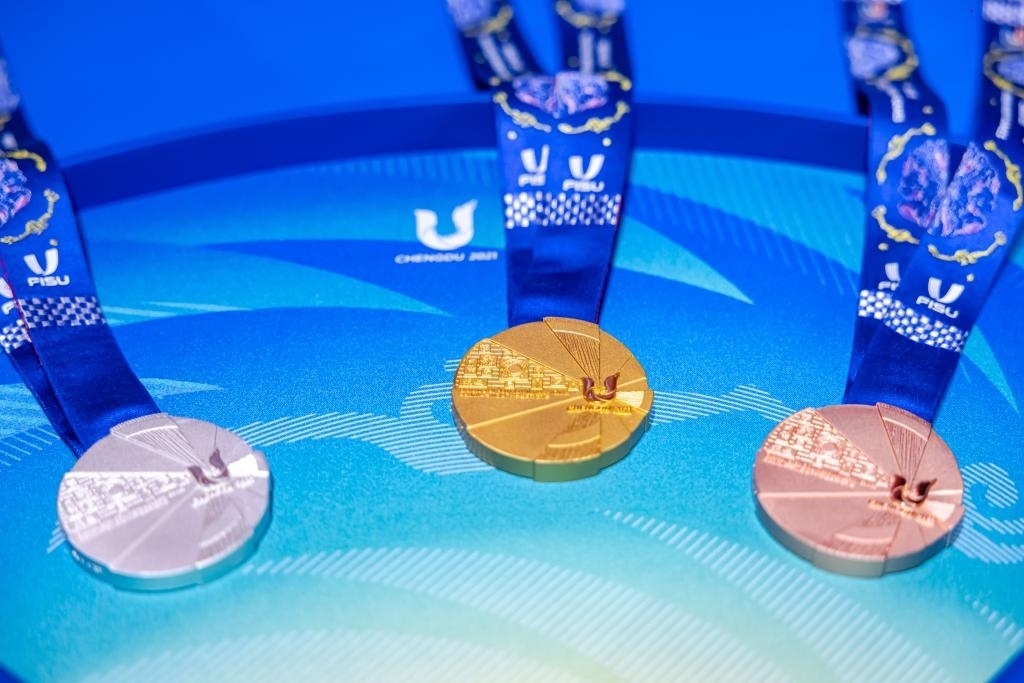 獎(jiǎng)牌是每個(gè)體育賽事的重要組成部分之一,本屆大運(yùn)會(huì)獎(jiǎng)牌根據(jù)國(guó)際大體聯(lián)要求,融合成都和國(guó)際化傳播元素,最終形成了大運(yùn)會(huì)獎(jiǎng)牌“蓉光”。獎(jiǎng)牌整體設(shè)計(jì)以成都大運(yùn)會(huì)會(huì)徽和太陽神鳥為主要靈感,利用幾何扇面代表太陽光芒,傳遞了太陽神鳥守護(hù)夢(mèng)想的設(shè)計(jì)概念。獎(jiǎng)牌以“蓉光”為名,諧音為“榮光”,寓意榮耀、光彩,寄托了對(duì)大運(yùn)健兒在成都青春展翅、乘夢(mèng)而行的美好期許。
