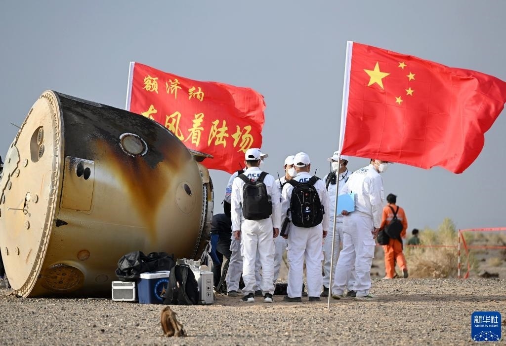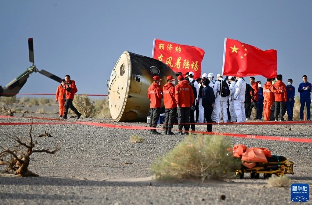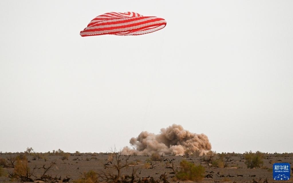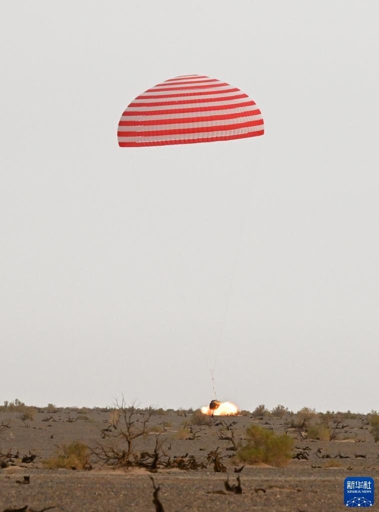 6月4日,神舟十五號(hào)載人飛船返回艙在東風(fēng)著陸場成功著陸。新華社記者 連振 攝