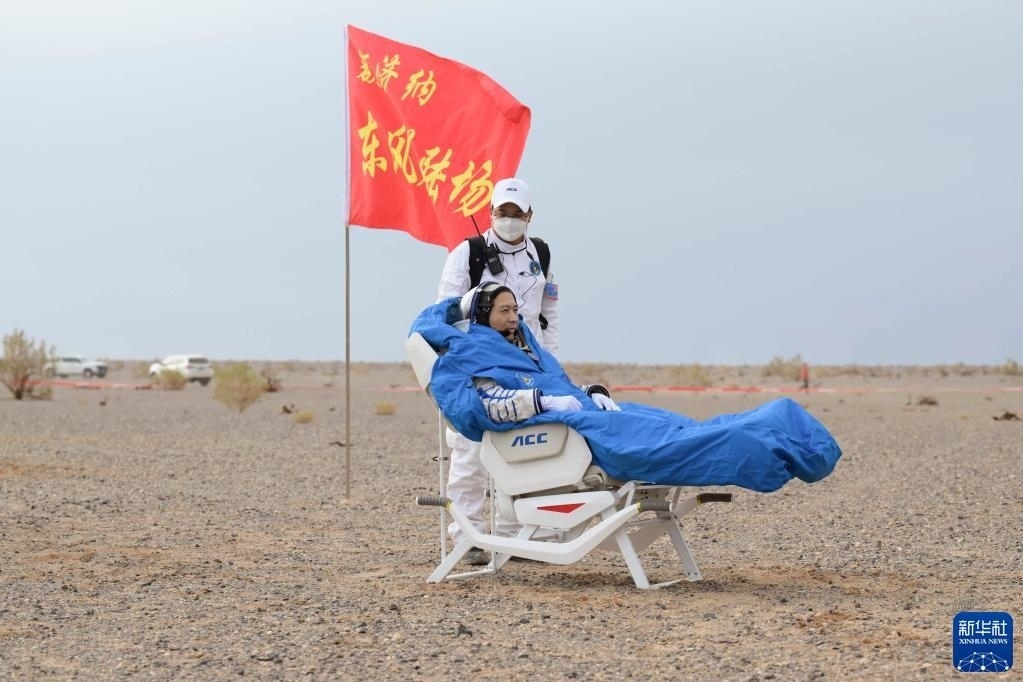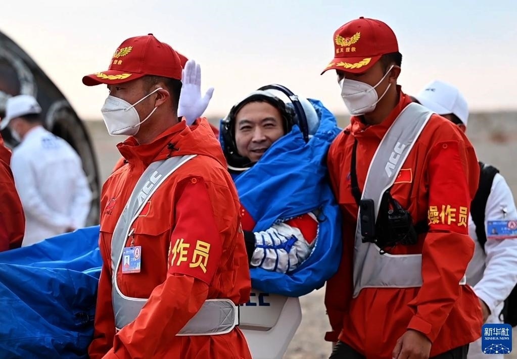 6月4日,神舟十五號(hào)載人飛船返回艙在東風(fēng)著陸場成功著陸。這是航天員張陸安全順利出艙。新華社記者 李志鵬 攝