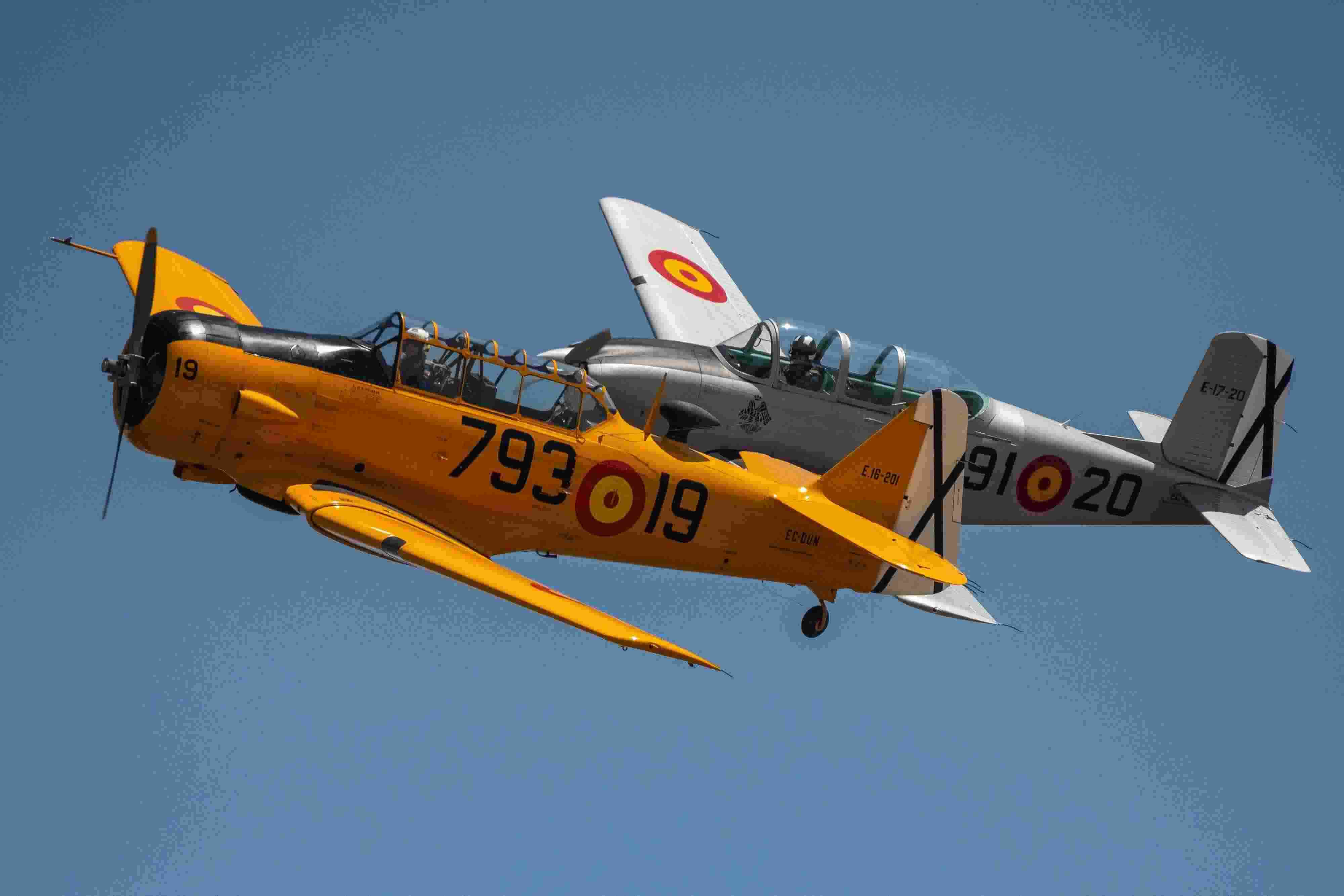 當(dāng)?shù)貢r(shí)間2023年6月4日,西班牙馬德里舉行老式飛機(jī)航空展,多型老式飛機(jī)進(jìn)行飛行表演。 視覺中國(guó)