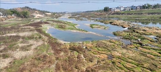 長(zhǎng)江某支流一處采砂廠附近的河床。 (新華社記者董雪 攝)