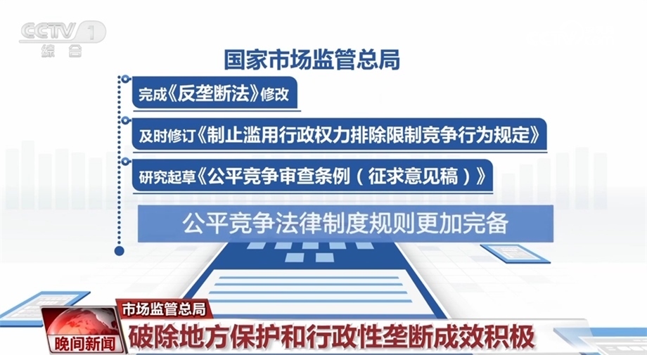在破除地方保護(hù)和行政性壟斷方面,國家市場監(jiān)督管理總局相關(guān)負(fù)責(zé)人表示,市場監(jiān)管總局完成了《反壟斷法》修改,及時(shí)修訂《制止濫用行政權(quán)力排除限制競爭行為規(guī)定》,研究起草了《公平競爭審查條例(征求意見稿)》,公平競爭法律制度規(guī)則更加完備。