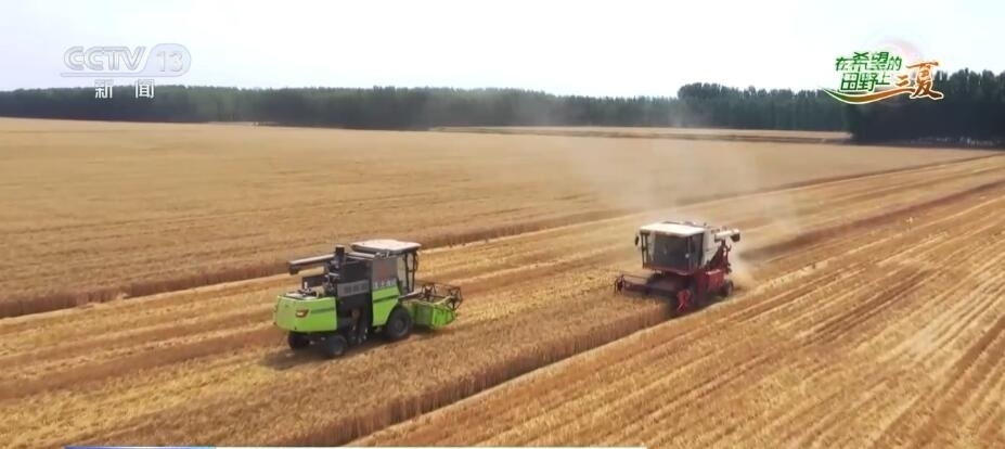 總臺(tái)央視記者 邵海成:我現(xiàn)在是在河南省西平縣,我身后是1萬(wàn)多畝的小麥良種基地。當(dāng)?shù)卣{(diào)集10臺(tái)大馬力收割機(jī)參與小麥種子的搶收,每小時(shí)收割小麥400多畝。