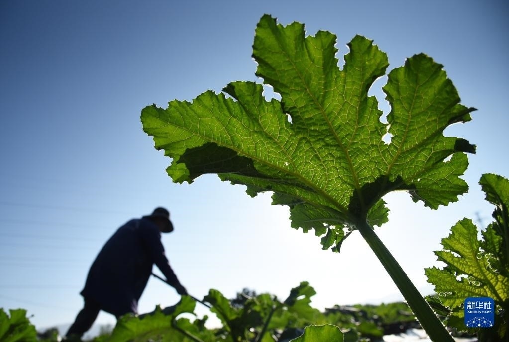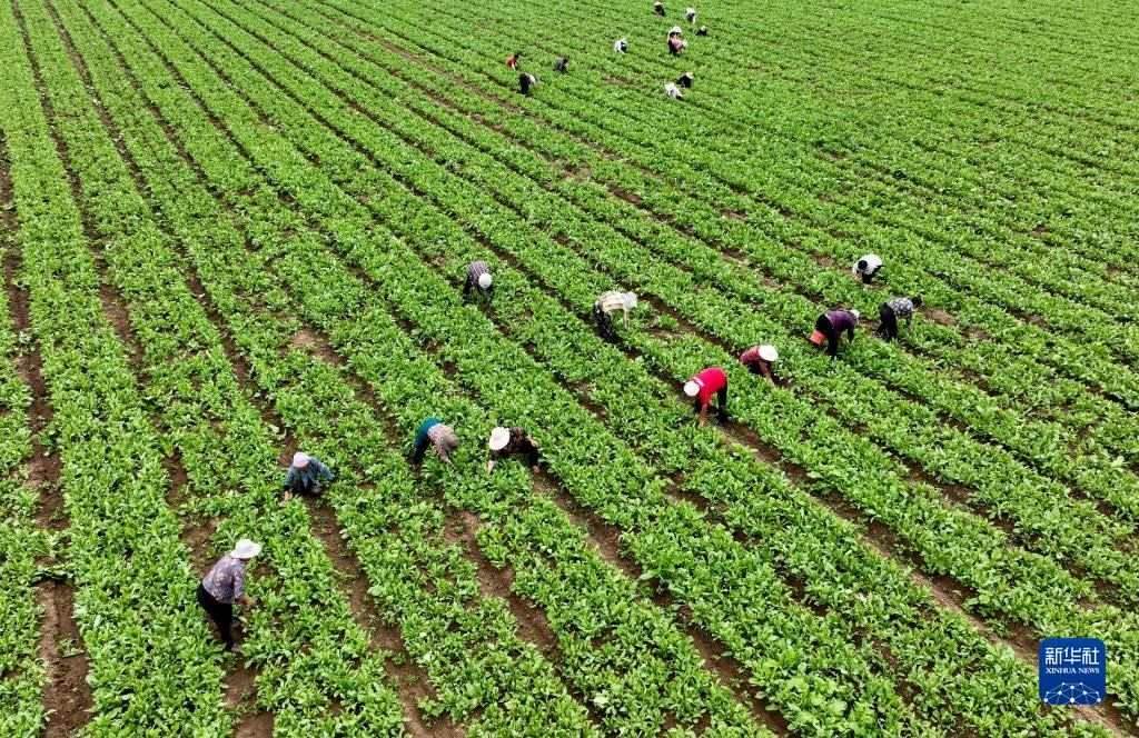 6月5日,在云南省麗江市玉龍納西族自治縣黃山街道長水社區(qū),菜農在田里勞作。
