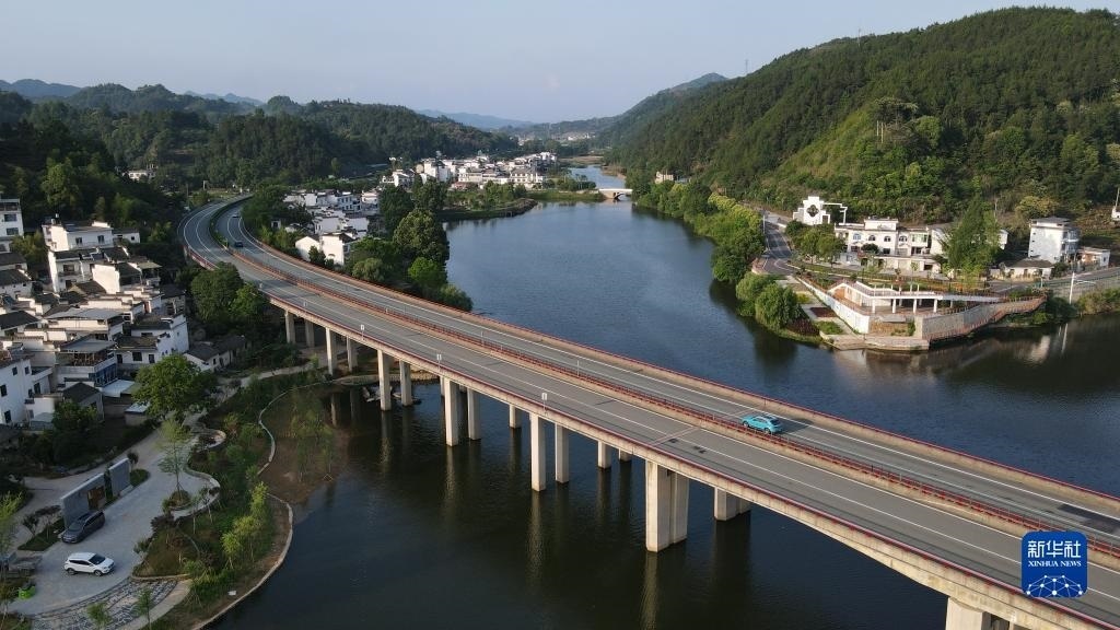 這是6月1日拍攝的安徽省黃山市歙縣新安江風(fēng)景(無人機(jī)照片)。新華社記者 張端 攝