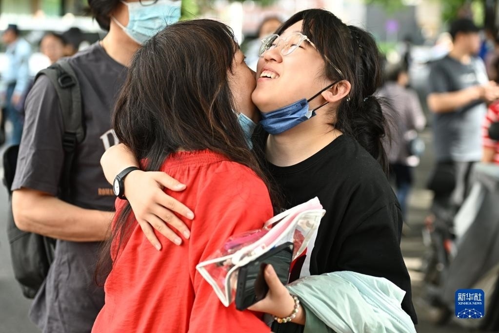 6月7日,在北京師范大學(xué)附屬實驗中學(xué)考點(diǎn)門口,一名考生進(jìn)入考點(diǎn)前擁抱母親。