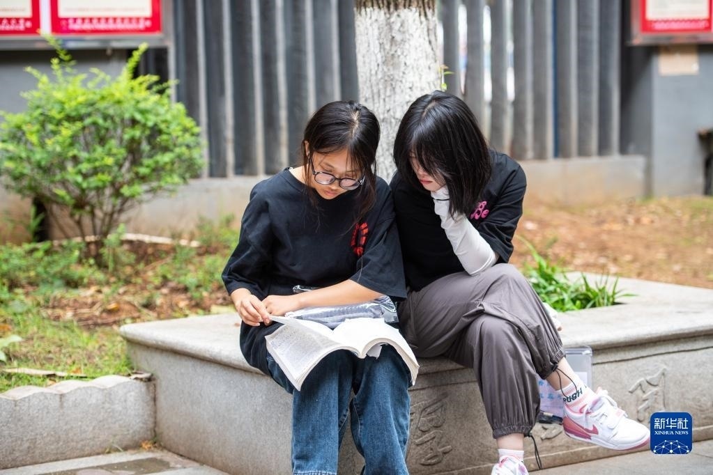 6月7日,在湖南長沙市第一中學(xué)考點(diǎn),考生在考場外復(fù)習(xí)。