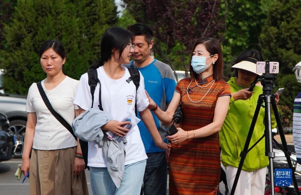 6月7日,在位于山東省濟(jì)南市的濟(jì)南藝術(shù)學(xué)??键c(diǎn),一名考生家長目送考生進(jìn)入考場。
