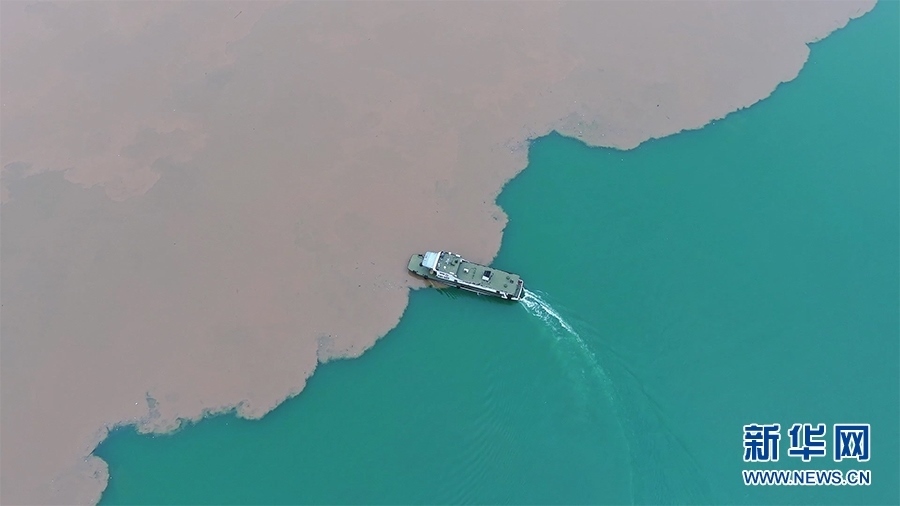 受近期長(zhǎng)江上游持續(xù)降雨影響,位于重慶涪陵的長(zhǎng)江與烏江交匯處,兩江因含沙量不同而顏色對(duì)比鮮明,形成猶如重慶火鍋中“鴛鴦鍋”景觀(guān)。新華網(wǎng)發(fā) (夏雷 攝)