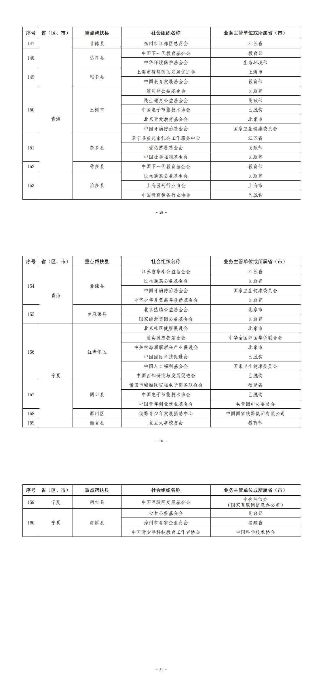 央視網(wǎng)消息:據(jù)民政部網(wǎng)站消息,為深入貫徹落實(shí)黨的二十大決策部署,根據(jù)《社會(huì)組織助力鄉(xiāng)村振興專項(xiàng)行動(dòng)方案》,民政部、國(guó)家鄉(xiāng)村振興局在社會(huì)組織自愿報(bào)名、有關(guān)部門推薦申報(bào)、160個(gè)國(guó)家鄉(xiāng)村振興重點(diǎn)幫扶縣同意對(duì)接的基礎(chǔ)上,形成了《全國(guó)性社會(huì)組織、東部?。ㄖ陛犑校┥鐣?huì)組織與160個(gè)國(guó)家鄉(xiāng)村振興重點(diǎn)幫扶縣結(jié)對(duì)幫扶名單》(見(jiàn)附件),現(xiàn)予印發(fā)執(zhí)行,有關(guān)工作通知如下。