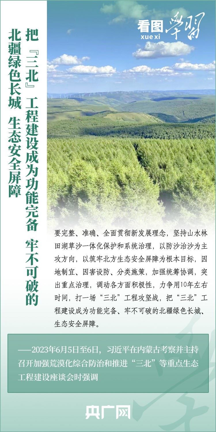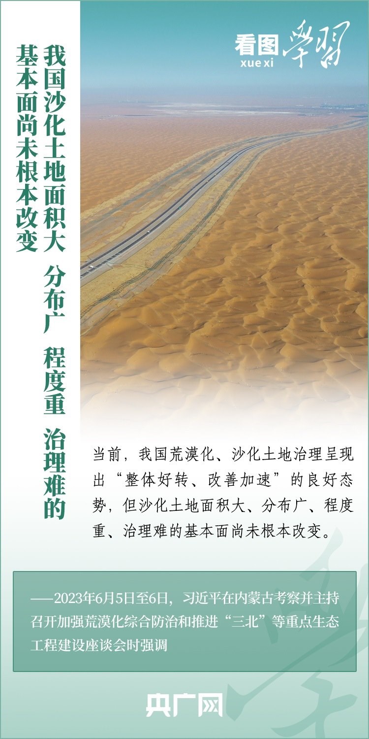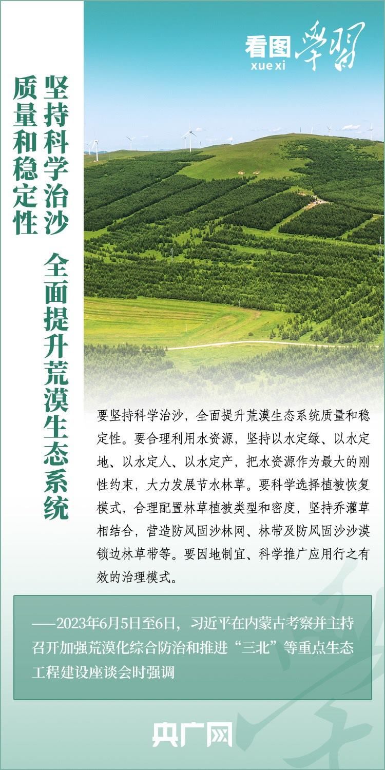 6月5日至6日,習(xí)近平總書記來(lái)到內(nèi)蒙古自治區(qū)巴彥淖爾市,深入自然保護(hù)區(qū)、現(xiàn)代農(nóng)業(yè)示范園區(qū)、林場(chǎng)、水利部門等考察調(diào)研,主持召開(kāi)加強(qiáng)荒漠化綜合防治和推進(jìn)“三北”等重點(diǎn)生態(tài)工程建設(shè)座談會(huì)并發(fā)表重要講話??倳洀?qiáng)調(diào),要勇?lián)姑?、不畏艱辛、久久為功,努力創(chuàng)造新時(shí)代中國(guó)防沙治沙新奇跡,把祖國(guó)北疆這道萬(wàn)里綠色屏障構(gòu)筑得更加牢固,在建設(shè)美麗中國(guó)上取得更大成就。一起來(lái)學(xué)習(xí)!