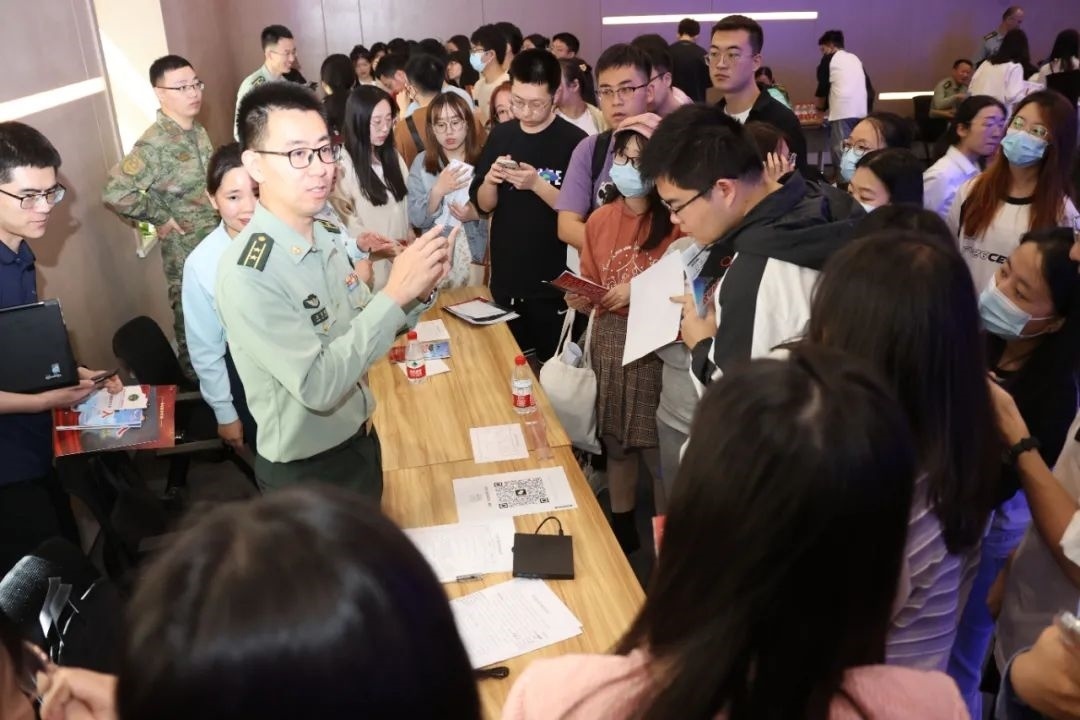 在該大學(xué)洽談活動(dòng)現(xiàn)場(chǎng),數(shù)百平米的大教室人頭攢動(dòng),學(xué)生們積極踴躍咨詢(xún),投送簡(jiǎn)歷,填寫(xiě)意向書(shū),無(wú)不體現(xiàn)出大家投身國(guó)防的熱情。就讀于該校先進(jìn)制造專(zhuān)業(yè)的一名博士生提問(wèn):“通過(guò)現(xiàn)場(chǎng)查看陸軍文職人員崗位需求計(jì)劃,發(fā)現(xiàn)沒(méi)有我所學(xué)的專(zhuān)業(yè)名稱(chēng),不知道咱們還會(huì)不會(huì)調(diào)整專(zhuān)業(yè)?”