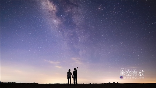 北京市天文攝影愛(ài)好者王俊峰2019年8月3日在江西省上饒市橫峰縣葛源鎮(zhèn)拍攝的兩位年輕人在仰望夏日銀河。(本人供圖)