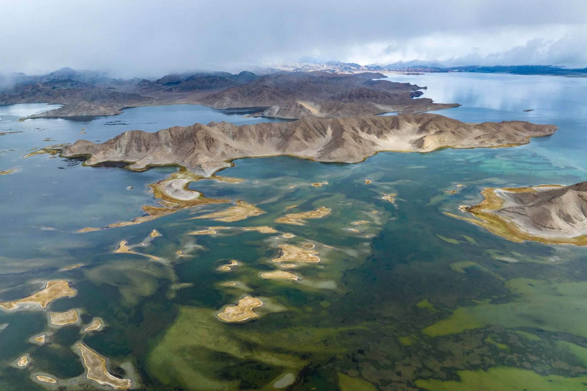 2023年6月6日,西藏阿里,日土縣班公湖,湛藍的湖水、潔白的雪山、奇特的沿湖景觀,構成一幅夏日醉美畫卷。視覺中國