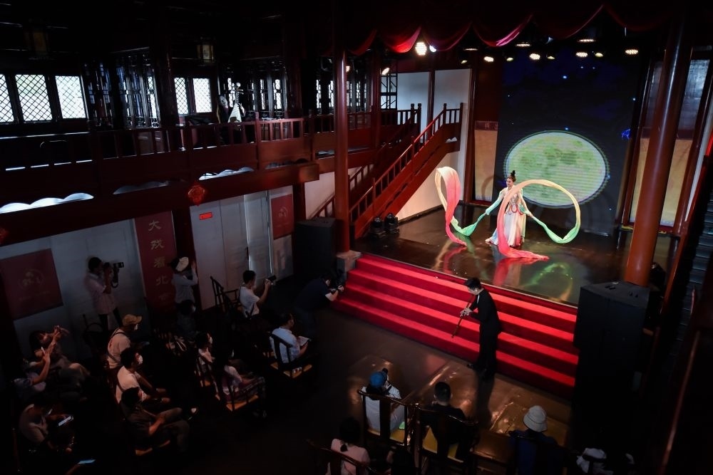 演員在北京顏料會(huì)館表演中國傳統(tǒng)舞蹈節(jié)目。新華社記者陳鐘昊 攝