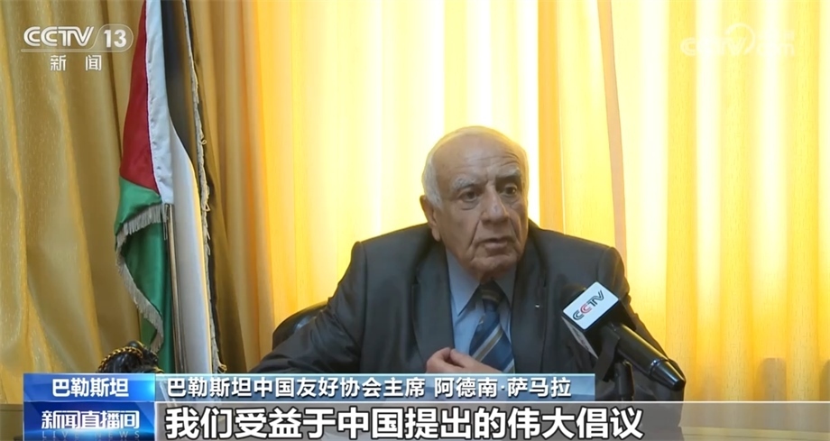 巴勒斯坦中國友好協(xié)會(huì)主席 阿德南·薩馬拉:中國是巴勒斯坦人民的好朋友,中國是世界上最早承認(rèn)巴解組織和巴勒斯坦國的國家之一,中國向巴方提供了大量物資援助。