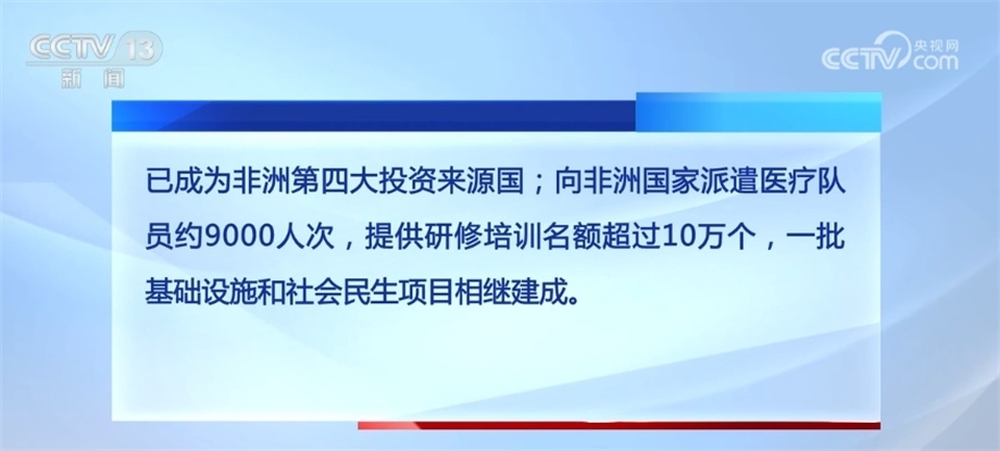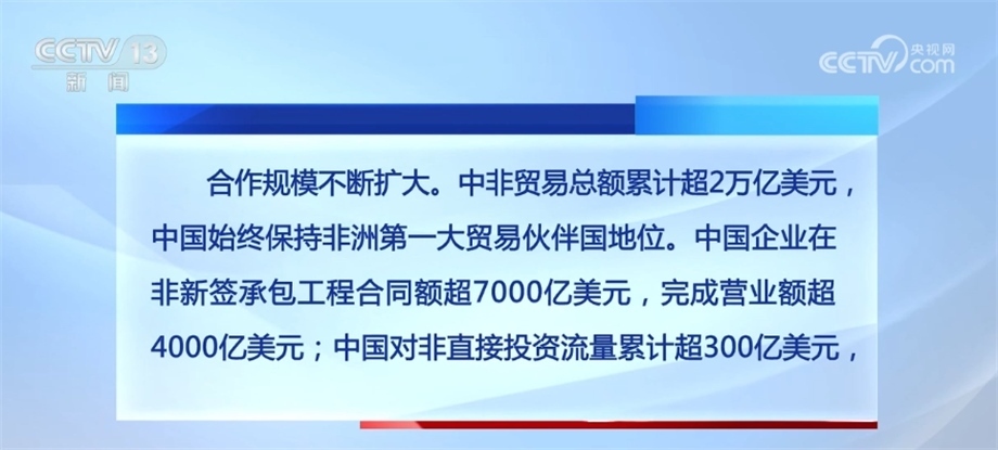 合作規(guī)模不斷擴大。中非貿易總額累計超2萬億美元,中國始終保持非洲第一大貿易伙伴國地位。中國企業(yè)在非新簽承包工程合同額超7000億美元,完成營業(yè)額超4000億美元;中國對非直接投資流量累計超300億美元,已成為非洲第四大投資來源國;向非洲國家派遣醫(yī)療隊員約9000人次,提供研修培訓名額超過10萬個,一批基礎設施和社會民生項目相繼建成。