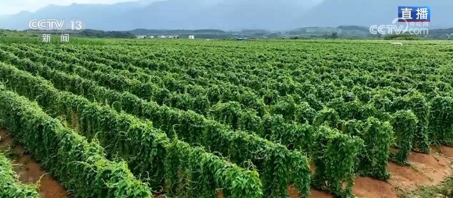 央視網(wǎng)消息: 當(dāng)下,在廣西賀州市富川瑤族自治縣,上萬(wàn)畝的淮山正陸續(xù)進(jìn)入營(yíng)養(yǎng)生長(zhǎng)期,村民們忙著開(kāi)展各種管護(hù)工作??偱_(tái)記者廖汨就正在富川的一個(gè)淮山種植基地,馬上來(lái)連線她。