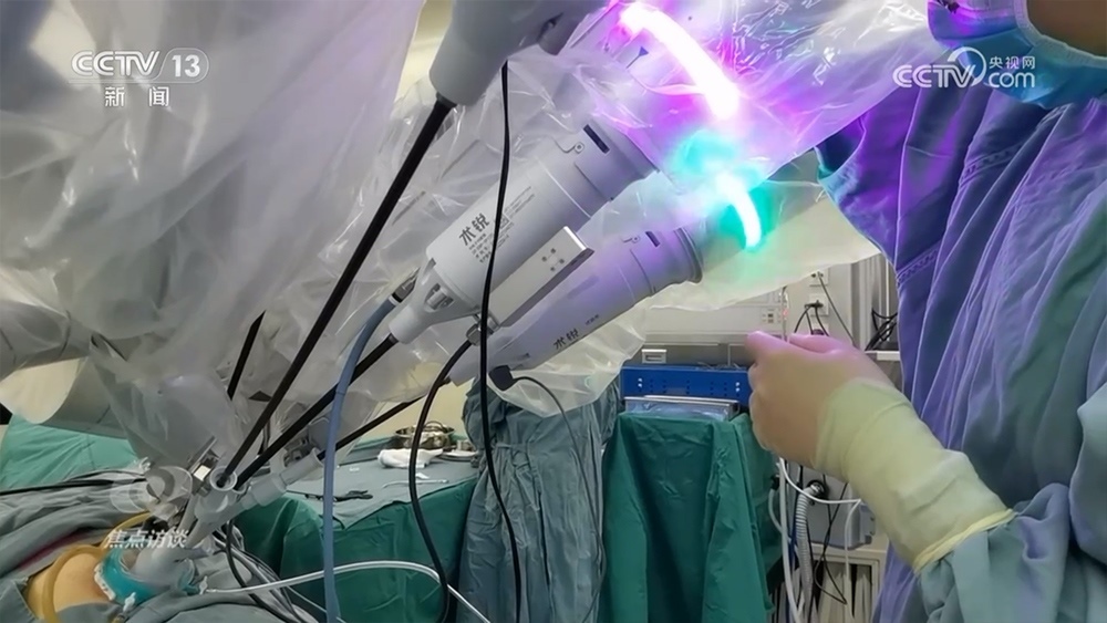 孫醫(yī)生使用的單孔腔鏡手術(shù)機器人由北京術(shù)銳研發(fā)。在68個高精度伺服電機的驅(qū)動下,單孔腔鏡手術(shù)機器人可以540度自由旋轉(zhuǎn),每秒可實現(xiàn)千次亞毫米級精準操控,完成人手無法完成的工作。過去做類似手術(shù)需要在患者身上打四個孔,現(xiàn)在僅需一個。