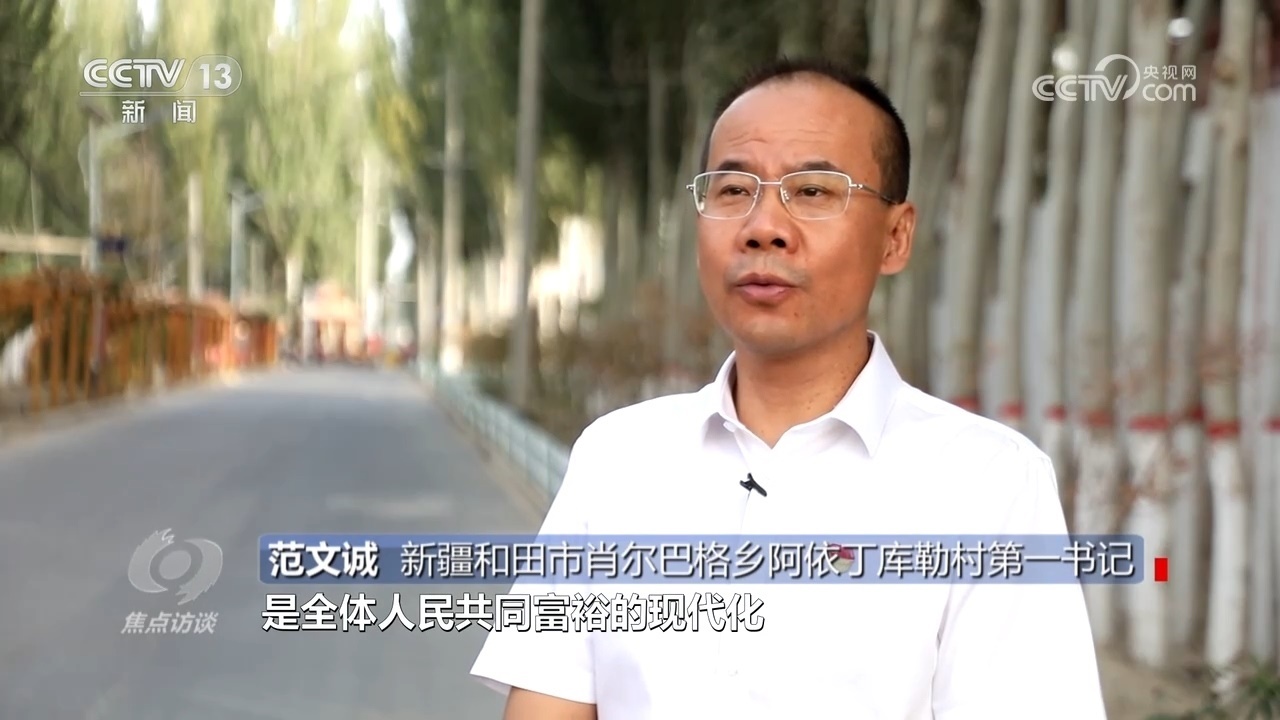 新疆和田市肖爾巴格鄉(xiāng)阿依丁庫勒村第一書記范文誠:“中國式現(xiàn)代化是人口規(guī)模巨大的現(xiàn)代化,是全體人民共同富裕的現(xiàn)代化,將理論聯(lián)系當(dāng)前的農(nóng)村實(shí)際相切合,要始終堅(jiān)持從人民出發(fā)、從實(shí)際出發(fā),分類確定建設(shè)發(fā)展模式、特色產(chǎn)業(yè)。”