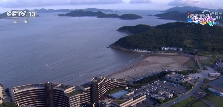 我們現(xiàn)在飛越的是象山的黃金海岸線。亞帆中心為什么花落象山的海岸呢?象山氣候適宜,常年風向風速穩(wěn)定,海域擁有多處寬闊無障礙、無條件限制的深水海域,非常適宜帆船、帆板運動。而且比賽場地離岸很近,配套設施齊全,能夠滿足集訓需求。國家青少年帆板帆船訓練基地就落戶這里。