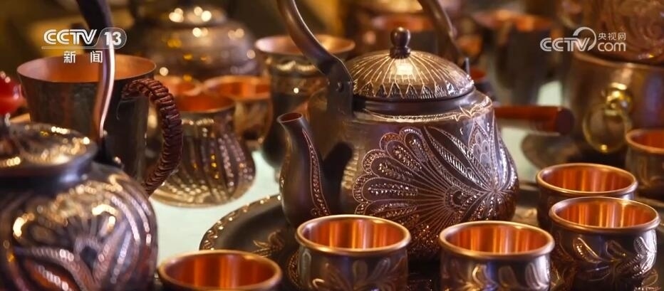 總臺(tái)記者 劉菲:如今的古城最吸引人們的并非熱鬧的商業(yè)街,而是一個(gè)個(gè)非物質(zhì)文化遺產(chǎn)的手工制作,現(xiàn)在在古城里有20多種的非遺制作。在很多年前我曾經(jīng)來(lái)過(guò)這里,這里就是一個(gè)小小的鐵匠鋪,而如今再來(lái)到這兒,已經(jīng)變成了一個(gè)打鐵技藝的展示館。小到一個(gè)湯勺,大到生產(chǎn)農(nóng)具,聽(tīng)著這打鐵的聲音,也仿佛把我?guī)Щ亓水?dāng)年。