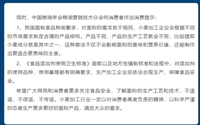 ·面粉添加“科技與狠活”?中國(guó)糧油學(xué)會(huì)營(yíng)銷(xiāo)技術(shù)分會(huì)辟謠:與事實(shí)不符。