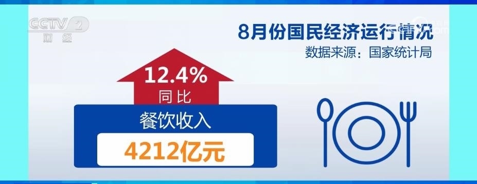 市場銷售加快恢復(fù),8月份,社會消費(fèi)品零售總額37933億元,同比增長4.6%,增速比上月加快;餐飲收入4212億元,同比增長12.4%,保持較快增速。