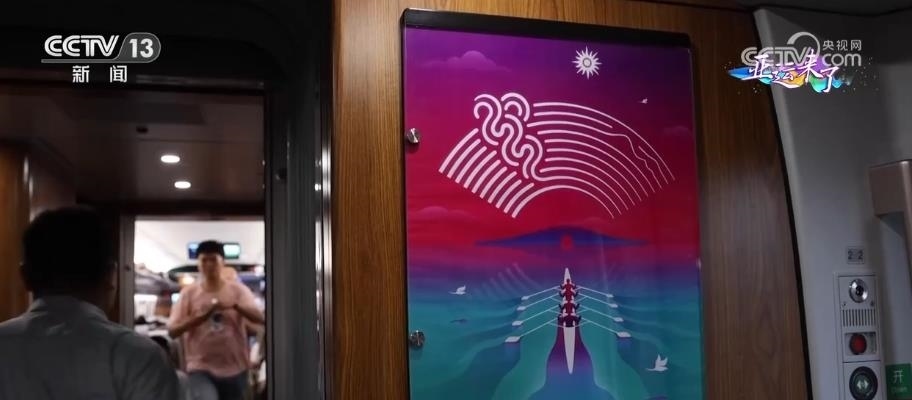 復(fù)興號亞運智能動車組編組8輛、定員578人,列車運營時速達350公里。外觀以“潤澤江南”為主題,采用杭州第19屆亞運會主形象色“虹韻紫”,乘客在車廂內(nèi)可以看到多姿多彩的亞運元素。